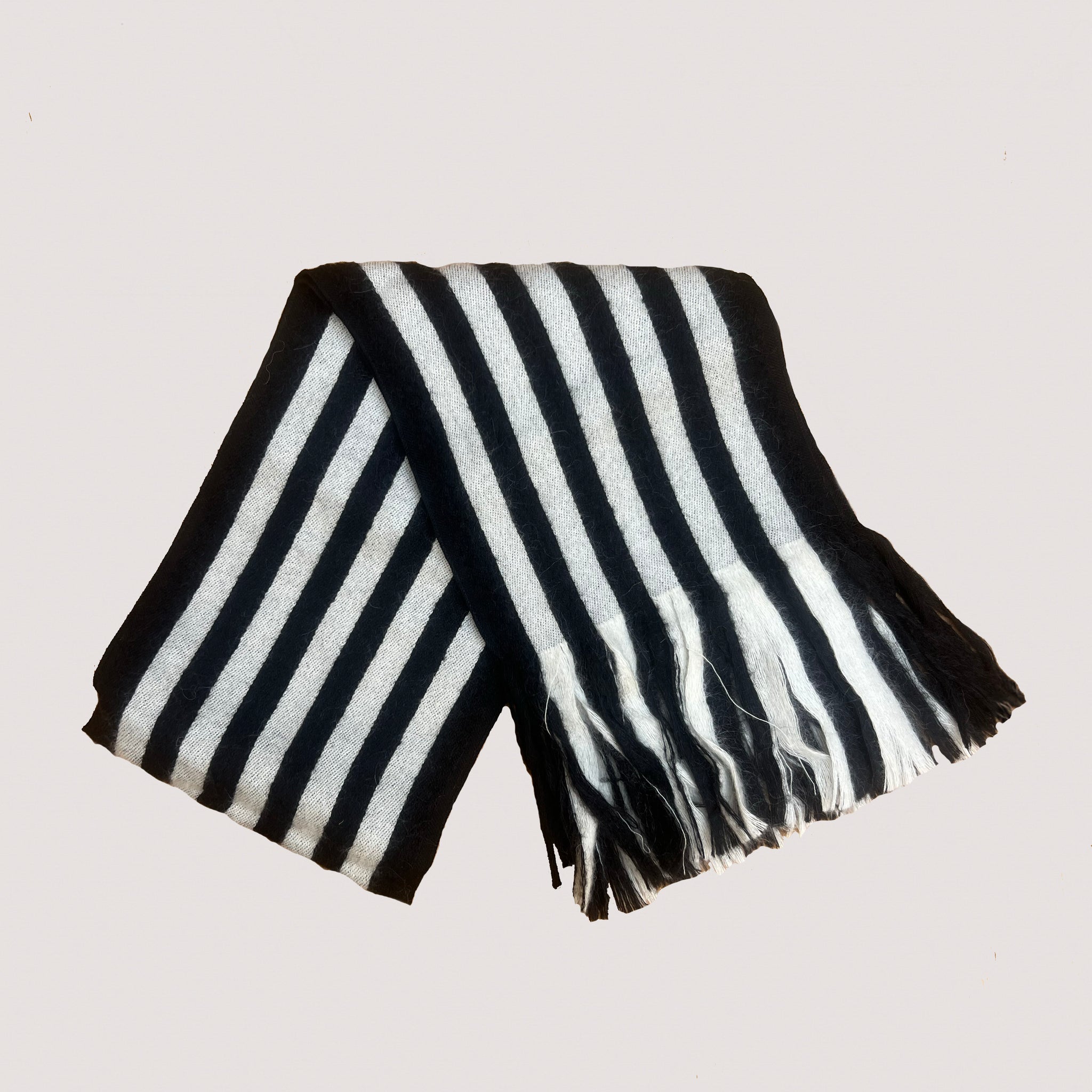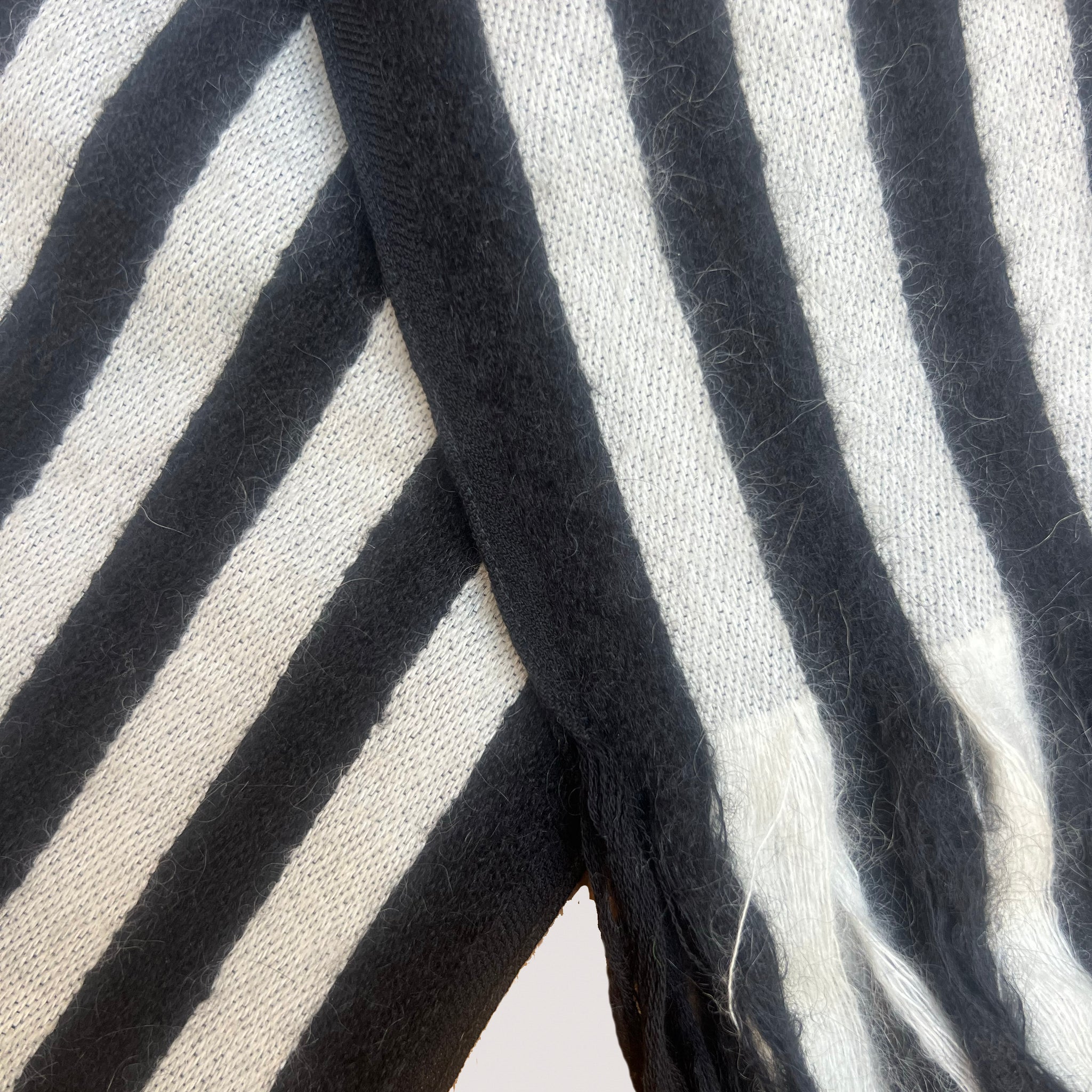 This Saint Laurent wool scarf makes any outfit instantly elevated with its bold monochrome design. Crafted in soft wool, it features striking black and white stripes finished with long fringed ends for added texture and movement. A subtle Saint Laurent logo tag adds a signature detail.