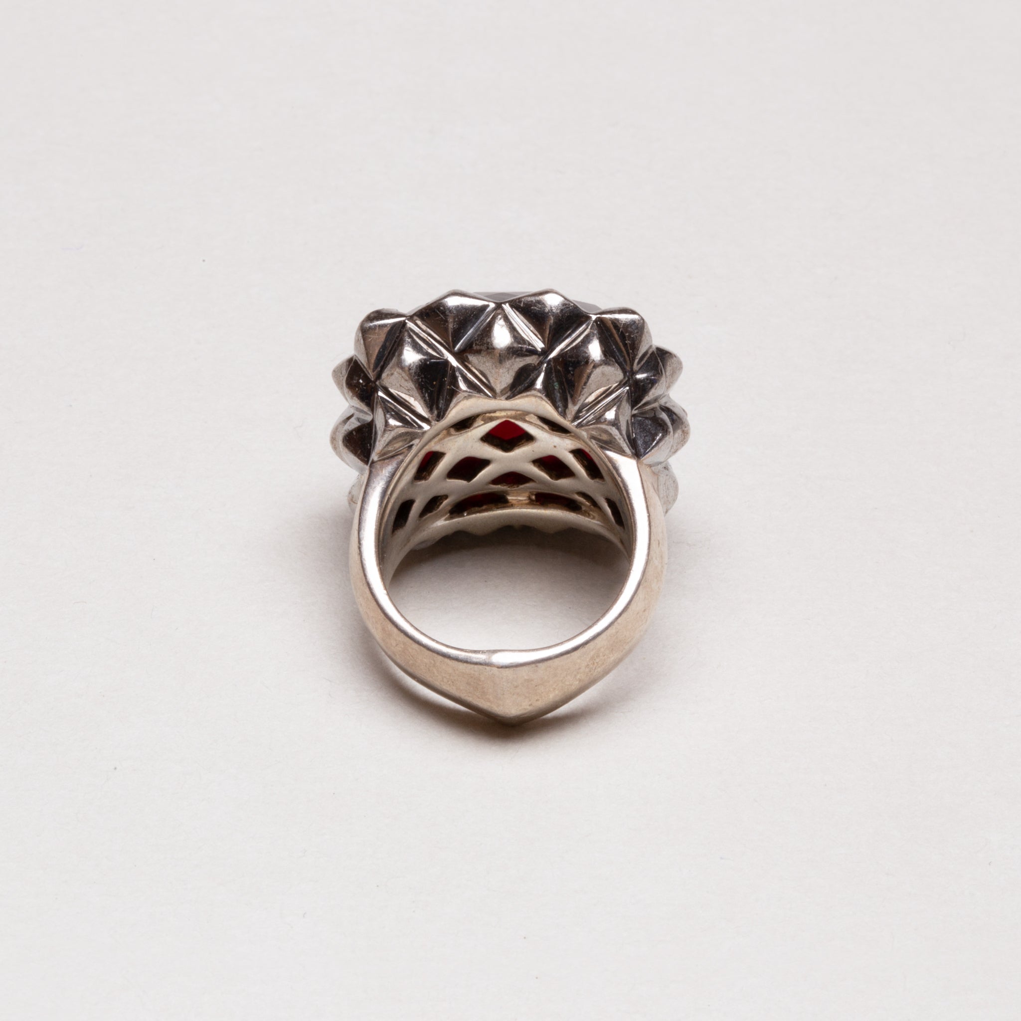Vintage Sterling Silver Square Ring with Garnet