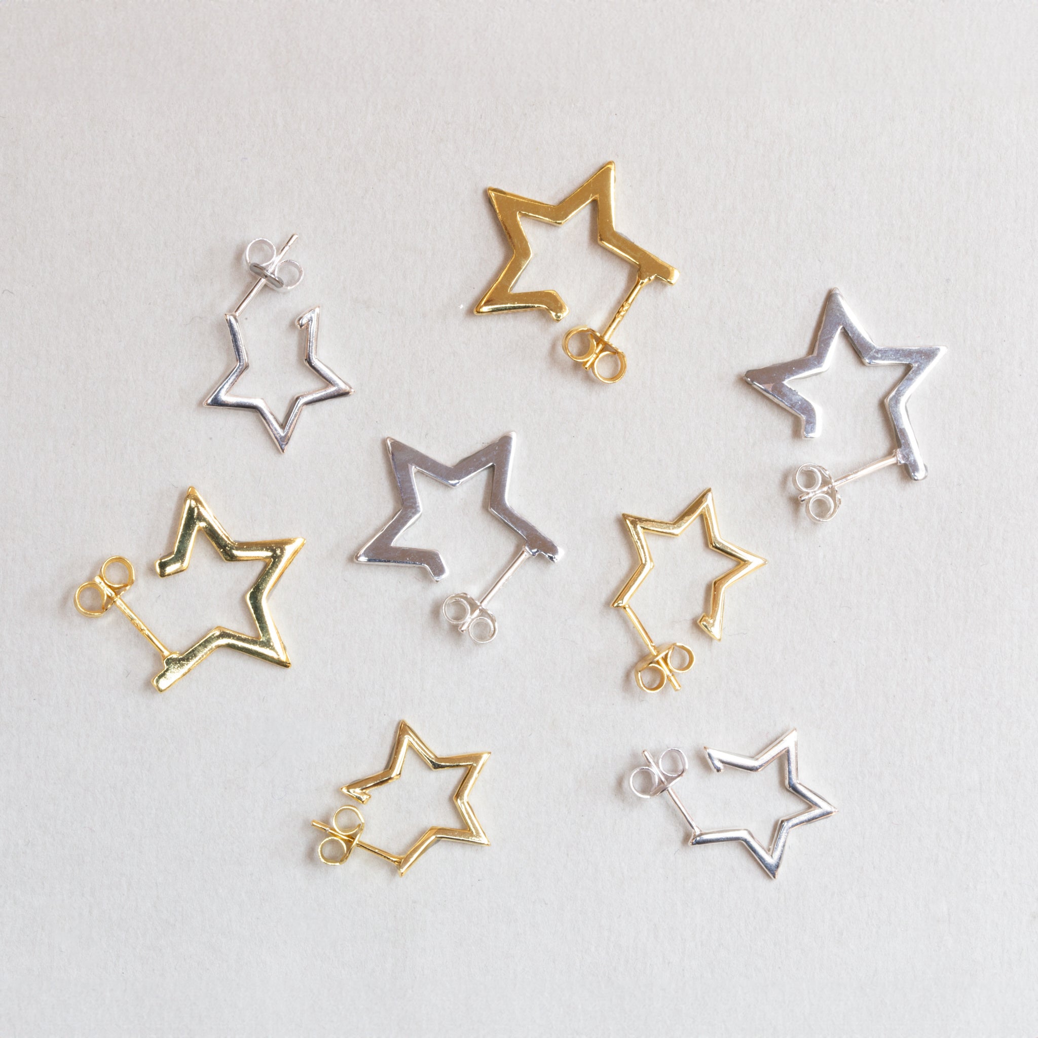 Stars for your ears, crafted in sterling silver or gold-plated silver.