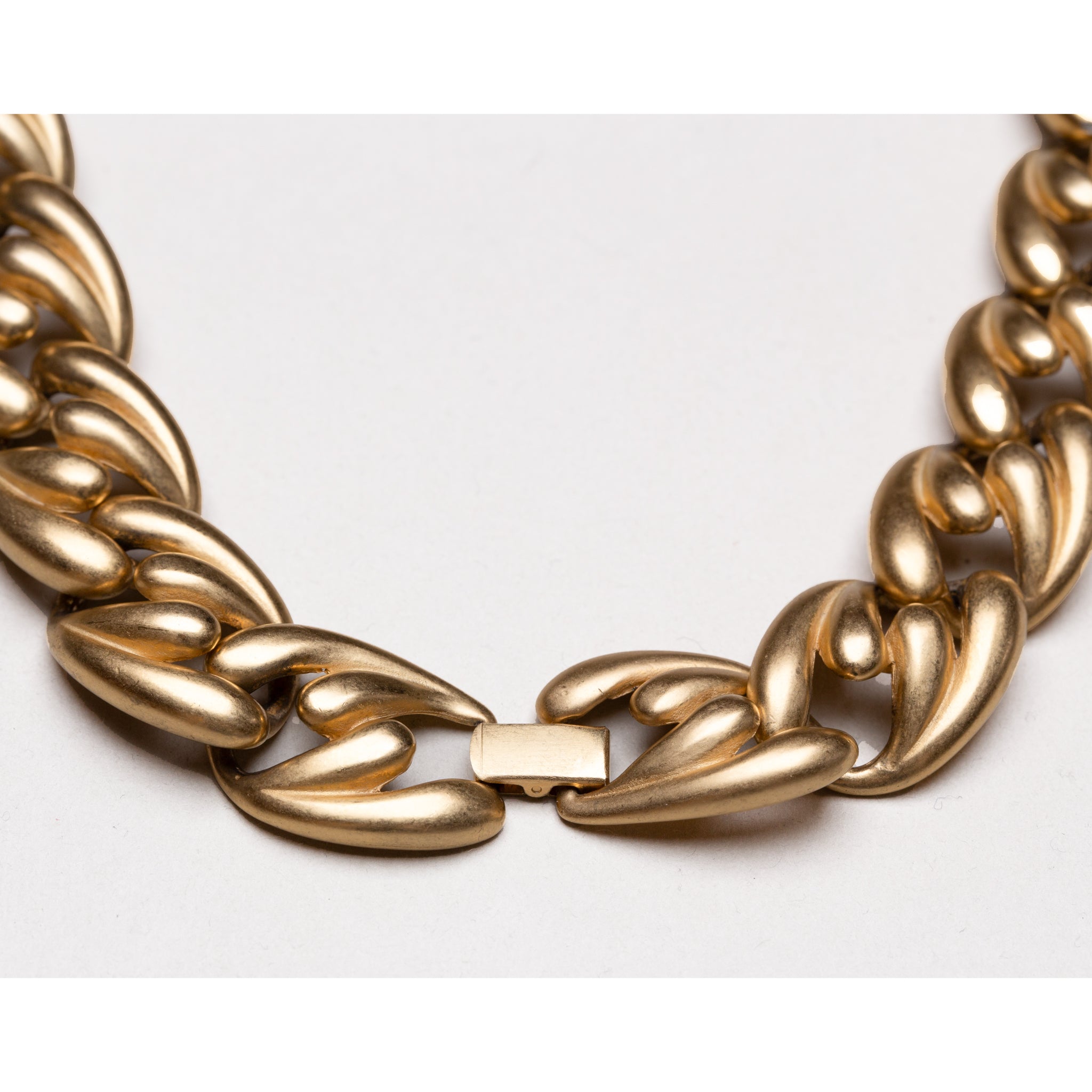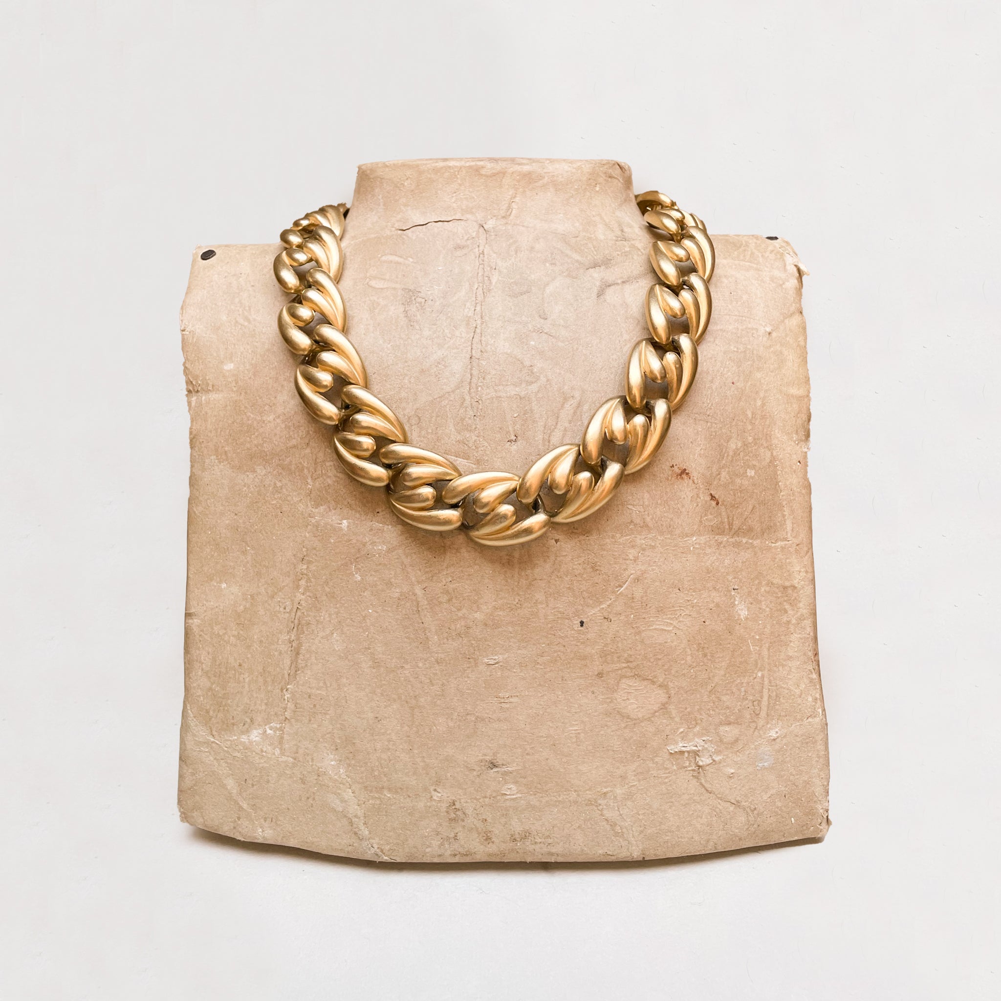 This vintage necklace and bracelet set exemplifies Erwin Pearl’s signature chain construction, composed of oversized, rounded links with a warm gold-tone finish.