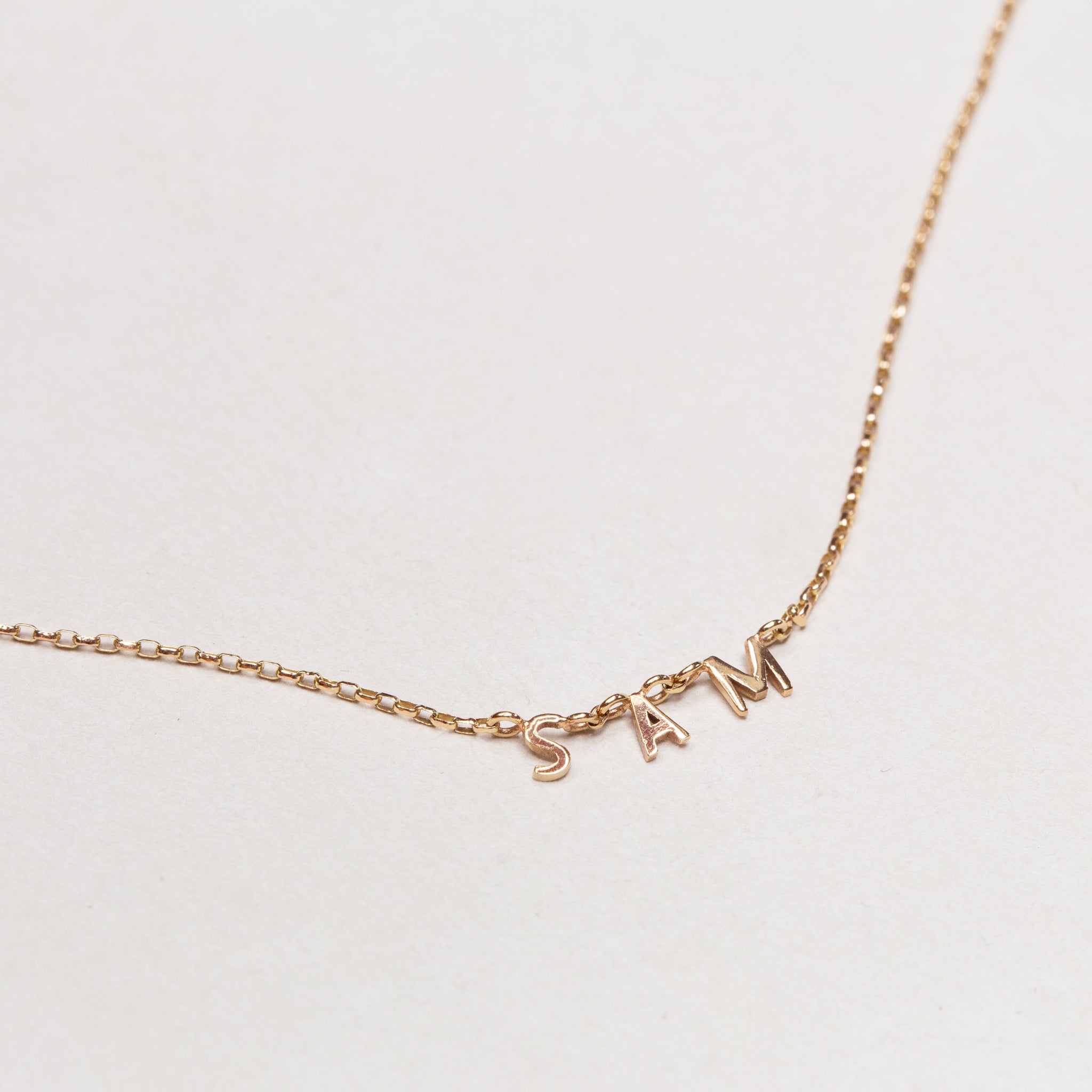 Part of the Initial Thoughts Collection, this Spaced Connect Name Necklace by Aurum + Grey is handmade from solid 9ct yellow gold in their UK atelier. Each delicate pendant measures 4mm, creating a refined yet personal piece designed to be cherished.